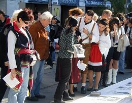 络绎不绝的中国代表团和旅游团途经卡尔斯广场时,都被横幅和图片所吸引,他们中大部份人很乐意接受法轮功学员递上的真相材料。有人当场表示退*团-和退少先队。也有少部份人对此不理解,认为是给中国人丢脸。法轮功学员耐心的告诉他们,中共不等于中国,我们中华民族五千年文化中没有中共邪*党-,希望他们能分清是非,认清中共邪*党-的本质。