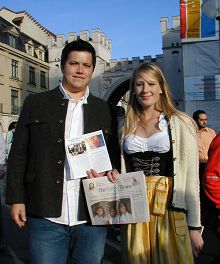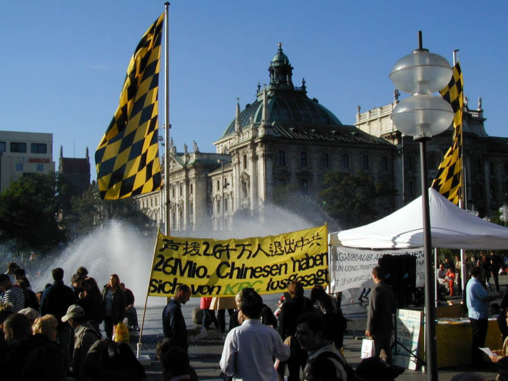 适逢周末,阳光下的慕尼黑令人感到格外清爽,一扫连续几天的凄风苦雨,晴朗的金秋,引来了无数参加慕尼黑啤酒节的游客。身着传统的巴伐利亚民族服装的人们,成为慕尼黑一道靓丽的风景。在这其中,声援退出中共的集会则是慕尼黑又一道引人注目的风景。