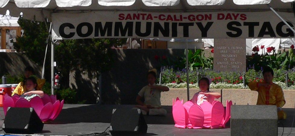 【明慧网二零零七年九月四日】二零零七年的劳动节周末,第三十五届年度桑塔凯勒冈节庆(SantaCaliGon Days)在美国大堪萨斯城地区的独立市(City Of Independence)市中心举行。这是当地最大规模的节庆活动之一。九月一日上午,当地部份法轮功学员参加了节庆活动。法轮功五套功法演示以及小莲花舞蹈队表演的“法轮大法好”舞蹈受到了观众们的热烈欢迎。