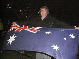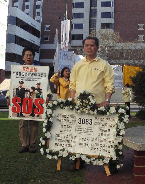![]() 展示澳洲国旗以表示支持法轮功的澳洲人 |