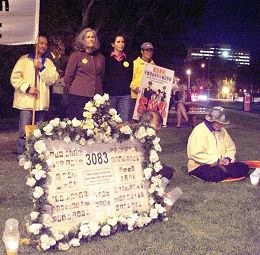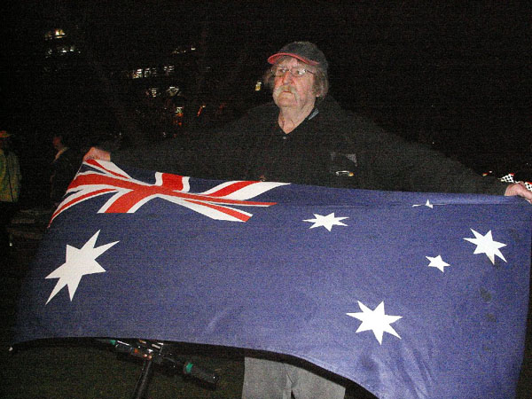 有两位基督长老教会的女士赶到了现场,戴上了“我支持法轮大法”的胸徽,默默站在法轮功学员的横幅边,直到夜悼的结束。还有一位行动不便的澳洲人,在现场打出了澳洲的国旗,以表示他对法轮功团体的支持。当警察询问他为何展示澳洲国旗时,他表示他非常乐意与一个祥和的团体在一起。