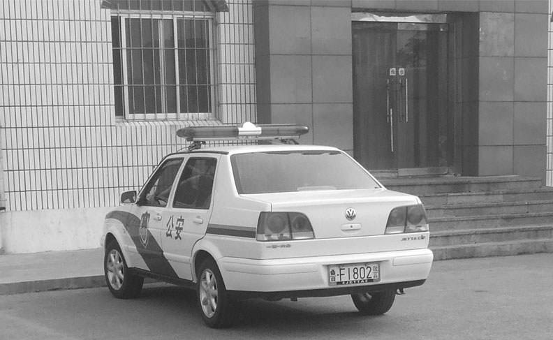 ![]() 这是洗脑班的大门,门口朝南。 | ![]() 这是在大门左面停放的警车 |