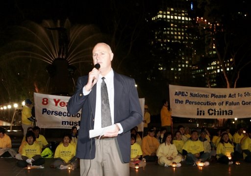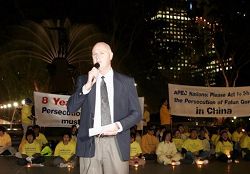 九月四日晚法轮功学员在悉尼著名的海德公园内举行新闻发布会暨烛光守夜,呼吁参加APEC的各国首脑和媒体关注法轮功人权问题,帮助结束这场长达八年之久的迫害并将迫害元凶绳之以法,并督促政府阻止并驱逐前来参加亚太经合会的中国商务部长薄熙来,澳洲不欢迎这样一位人权罪犯入境。路透社、每日电讯报、台湾宏观电视、新!唐!人:电视、大.纪.元;时报等中英文媒体对当天的活动进行了采访报道。