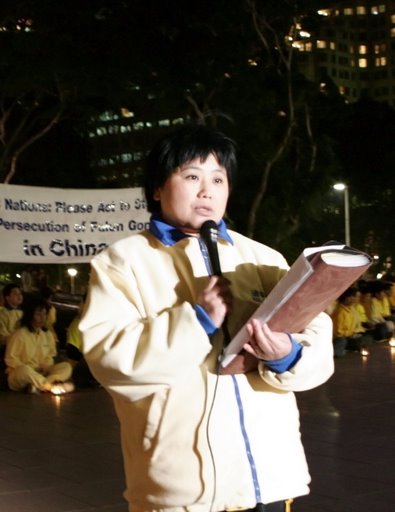来自大连的法轮功学员、中共迫害法轮功的亲身经历者的刘雅琴也在四日晚的新闻会上发言。刘雅琴一九九四年七月在辽宁省大连市开始修炼法轮功,因为坚持信仰,多次被抓捕关押,并于二零零一年到二零零三年九月期间未经审判被非法劳教二年关押在大连教养院,遭受酷刑和精神折磨,并且关押期间也被强制验血体检。在她被关押期间,就亲眼目睹好几个法轮功学员被酷刑折磨致死,还有一些学员被迫害的精神失常。她于二零零六年底来悉尼,作为这场迫害的亲身经历者,她愿意以自己经历的迫害为这个起诉案提供证据。