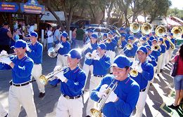 由各行业的法轮功学员组成的“天国乐团”分别在九月三日下午四点和六点半钟,在游行中为观众们演奏了“法轮大法好”、“送宝”等五首曲子。不少人一直跟随着乐队,很多观众用相机拍下了这一刻,并报以掌声和欢呼。法轮功学员们最后以一曲“佛恩圣乐”表达了他们对世人的祝福。