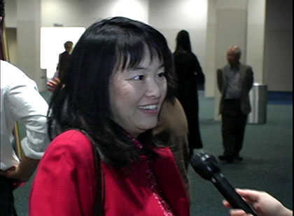 姜老先生说他从五十年代起就从事(与文化相关)的这方面工作,在大陆就曾听过关贵敏的歌。谈到神韵艺术团,姜老先生说:“我觉的这是一个完全由神来指导的这么一支队伍,不是一般的演员。因为一般的演员那只是杂耍,所以在那样一种情况下是‘宁带三千兵马,不带十个杂耍。’表面上在台上怎么好,怎么好,那只有形,没有神,就是不是发自内心的东西,那就是个表面的,所谓,‘画西施之面,美而不可说;规孟贲之目,大而不可畏。君形者亡焉’,神是形之君,因为只有有神来指导的东西,最后用形来表现出来,这就叫做以形写神。所以我概括起来就是八个字‘尽善尽美、神形兼备’。”