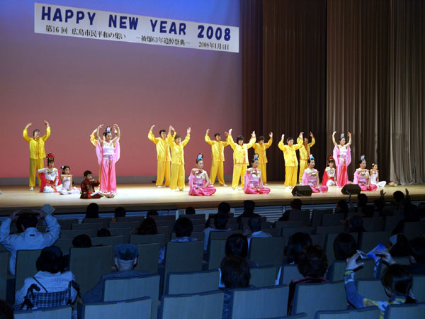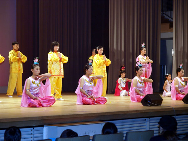 本次活动共有十二个团体参加,其中包括菲律宾和韩国的团体。「广岛法轮功爱好者会」的成员作为参加团体表演了舞蹈“花仙”和法轮功五套功法。大法小弟子手捧莲花,美丽的仙女舞动着轻柔的手臂,一幅绚丽清新的图画把现场观众带入神话般的世界。