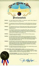 因此,我,科罗拉多州丹佛市郡市长约翰•西根陆坡(John W. Hickenlooper),凭借职责赋予我的权力,在此正式鼓励市民认识亚裔社区给我们的文化、社区和国家带来的可贵贡献,并祝愿每个人中国新年快乐。