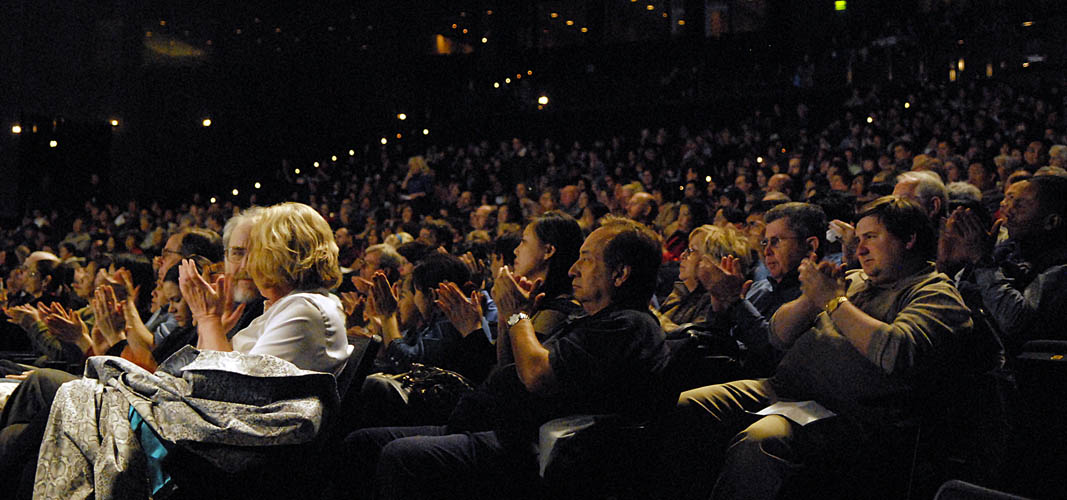 ![]() 晚会中,每个节目结束时,观众都热烈鼓掌。 |