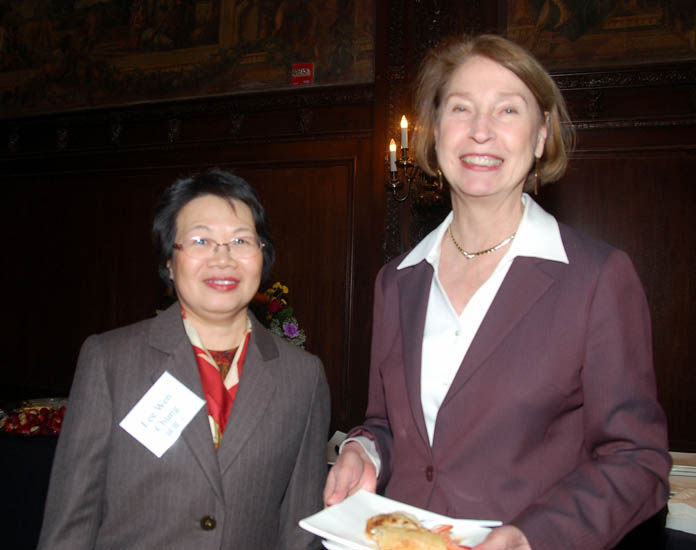 ![]() 麻州众议员玛丽·罗治尼思(右)与驻波士顿台北经济文化办事处副处长钟丽文。 |