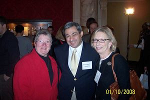 ![]() 麻州众议员Theodore C. Speliotis(中)和夫人(左)及他们的朋友瑞典驻新英格兰地区副总领事Ginga Sewerin-Olsson(右)。 |