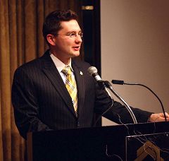 ![]() 加拿大保守党最年轻议员皮埃尔•宝莱悟(Pierre Poilievre)出席了招待会并观看了演出,他对晚会赞叹不已。 |