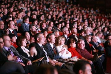 ![]() 一月十八日晚,新!唐!人:全球华人新年晚会在多伦多索尼中心上演,观众们聚精会神的观赏演出 |