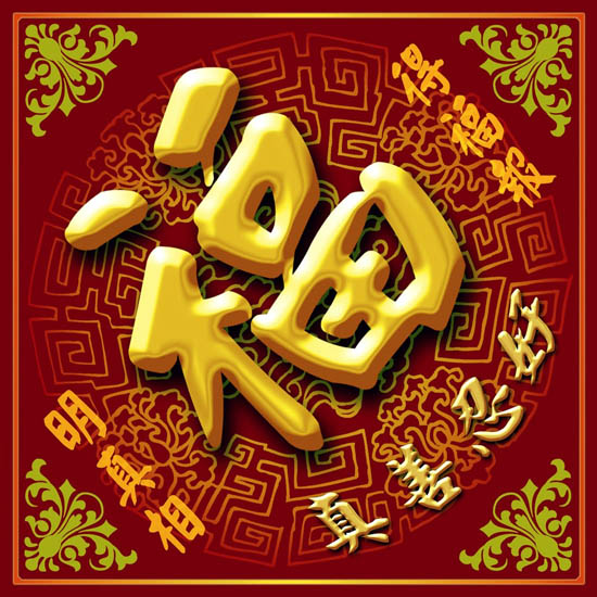 下载新年用方形福字卡、护身符卡数款(3.1MB)