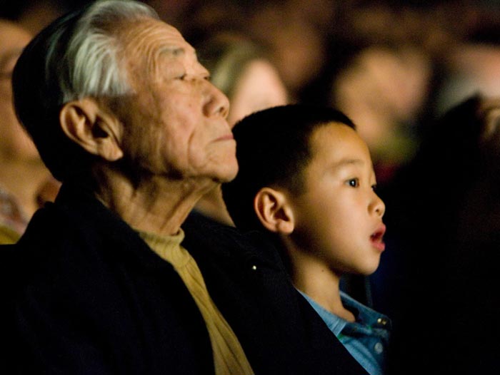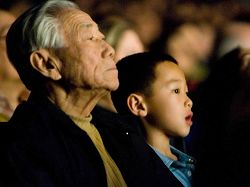 ![]() 日本老人金井(Noritushi Kanai)凝神观看晚会,他表示:演出很震撼。 |