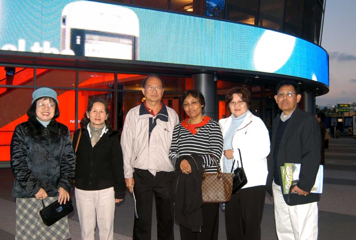 ![]() 泰国华人后裔韩美玲(左)和朋友八人一行前来观看晚会。 |