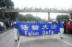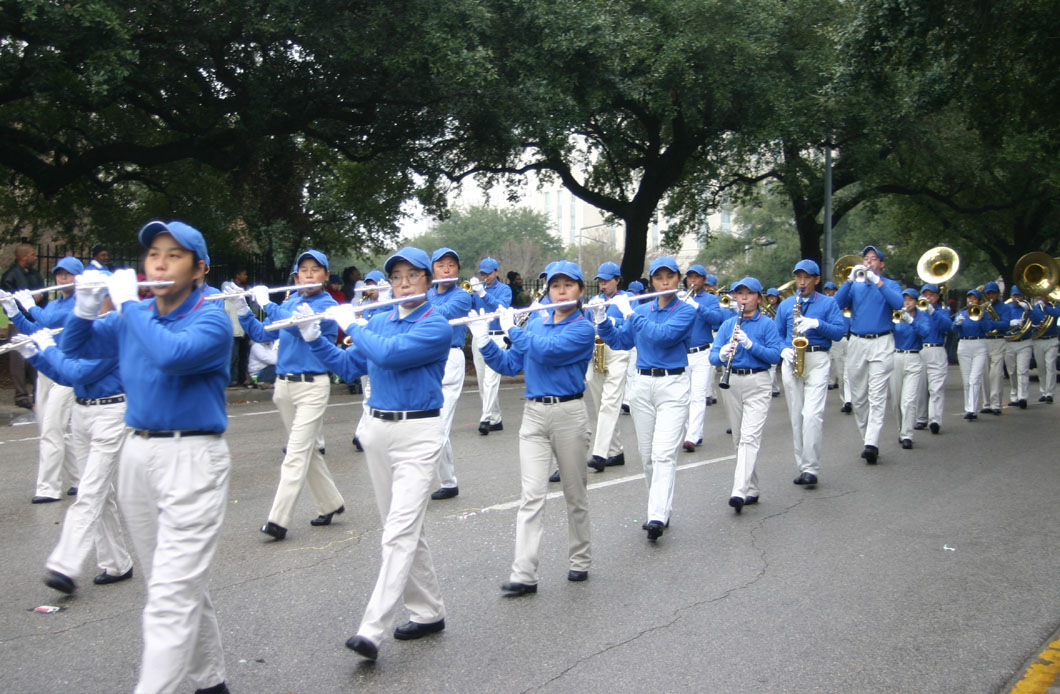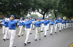 由德州法轮功学员组成的天国乐团神采奕奕,格外引人注目