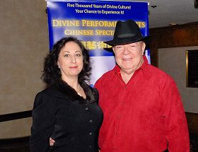 资深媒体制作人罗伯特•考尔菲力(Robert Corfeley)先生携夫人海特•考尔菲力(Heather Corfeley)前来观看新!唐!人:新年演出。晚会结束时,他不断赞叹神韵的表演,并一再感谢神韵艺术团来到拉斯维加斯,“感谢把真相带给我们和世界”。