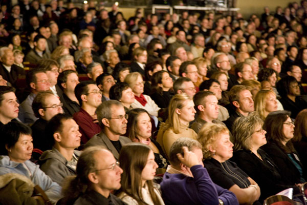 “神韵巡回艺术团”两个多小时的倾力演出,让歌剧院里的掌声一次次响起:当主持人询问观众是否喜欢豪迈、振奋的“大唐鼓吏”时,许多华人不约而同的喊出:喜欢!好看!当“觉醒”里,世人不再沉默,站出来维护正义和善良,为法轮功学员挡住恶警的棍子时,全场立即响起了雷鸣般的掌声,台上台下融为一体,向邪恶的迫害说“不”,同时为自己选择了光明和未来。当演出圆满结束时,来自不同种族、不同文化、不同年龄的观众们再一次起立,用掌声向“神韵巡回艺术团”的艺术家们致意。