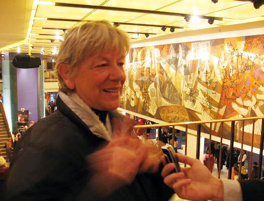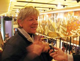 这边过来两位白人妇女,下面照片中的这位开心的说:“哇!非常杰出,非常好,非常美!舞蹈、服装、精神和传统,太美妙了!晚会展现的传统价值和道德价值……所有方面都好!他们自豪的表达出这些,他们如此愉快的给我们展示他们的传统和精神,他们太可爱了!我们能成为晚会的一部份太荣幸了!晚会太可爱了!舞蹈太高雅、太甜美了!”