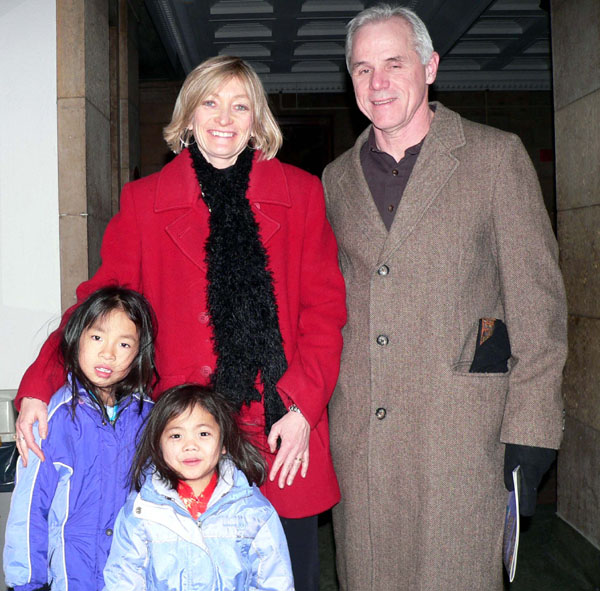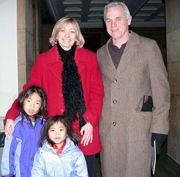 六岁的Isabella来自广东,四岁的Lila来自江西。现在她们是一家人了。领养了这两个可爱孩子的Henderson夫妇带她们来观赏晚会,体验纯正的中华文化。全家人都表示晚会很精彩,很有趣,他们热爱中国文化。Henderson夫妇说,两个小姑娘现在正在学体操,如果可能的话,会让她们学习中国舞。