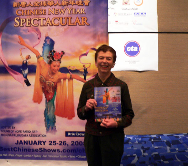 Briggs Beverly 是一名办公室管理人员,六年前曾经去中国旅游的她,非常喜爱中国传统文化。她笑容满面的告诉记者,她喜欢晚会中的每一个节目,她认为晚会的总体效果是十分(满分)。当然,她最喜爱的节目是舞蹈。那些演员轻盈、优雅的舞姿,轻快的舞步,令她赞叹不已。在晚会中场休息大厅里,她一边与记者交谈,一边忍不住试着模仿着演员们的动作,旋转起来,她真希望自己也能舞起来。“明年一定会邀请亲朋好友们一起来观看。”临别时,她笑着说。