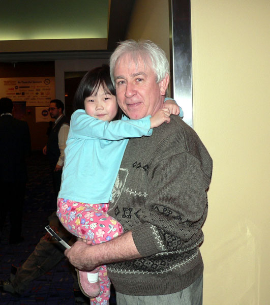 社会工作者 Steave Carlan 先生领着全家人一起来看晚会,中场休息时,他陪着爱女在休息厅里散步。谈到他来观看演出的经过,Steave激动的说道:“真是不可思议。”一天,当他在一家大商场内看到一位身着中国古装的男士,他立刻就被吸引住了。接过那位男士的派发的晚会传单,他立刻决定带着全家人来看晚会。他和家人喜欢晚会的所有节目。