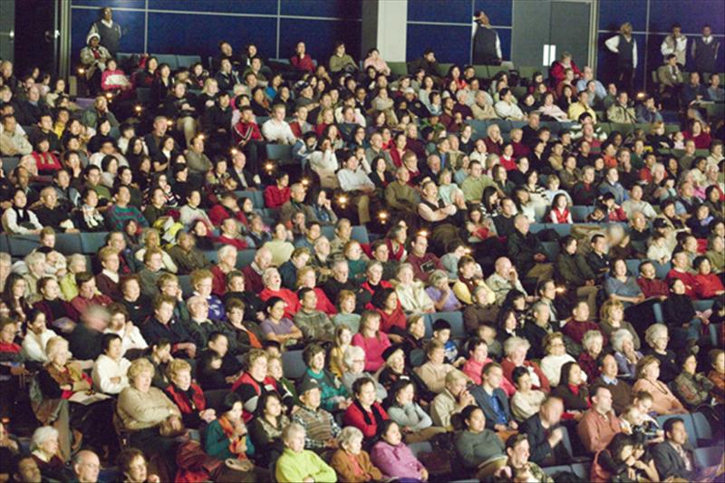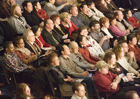 ![]() 二十六日下午,观众聚精会神的观赏新年晚会的第二场演出 |