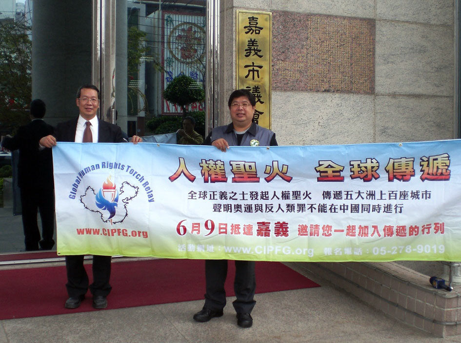 蔡文旭议员呼吁嘉义乡亲,人权圣火代表和平、象征希望,希望今年六月人权圣火到达时,嘉义市民全家大小都能出来迎接,大家一起来参加这个既健康又有意义的活动,让人权圣火一站一站的传递下去,一直到迫害停止。