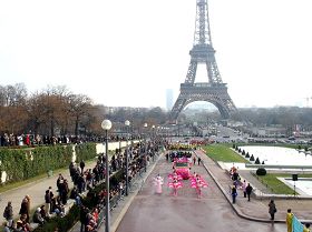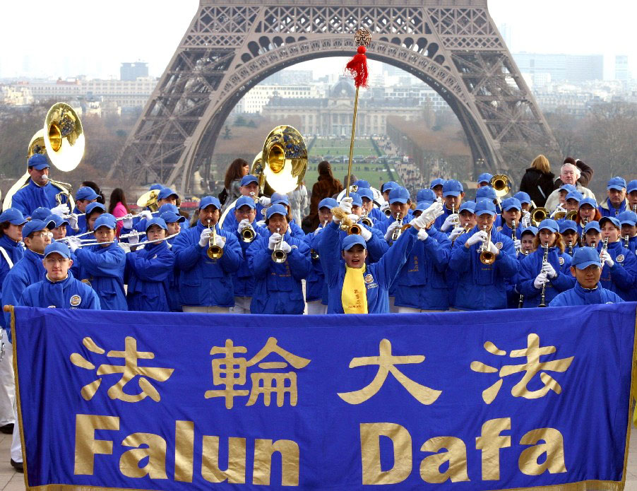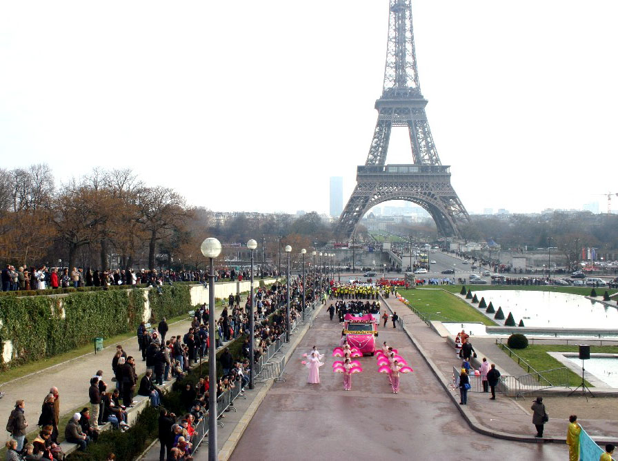 ![]() 以法轮功欧洲天国乐团打头阵的“巴黎游行节”吸引无数观众 |