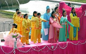 ![]() 法轮功学员表演扇子舞 |