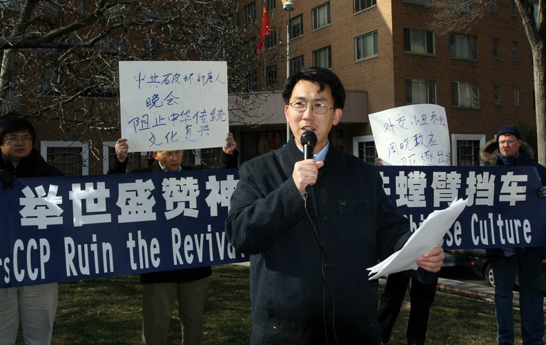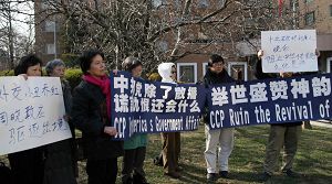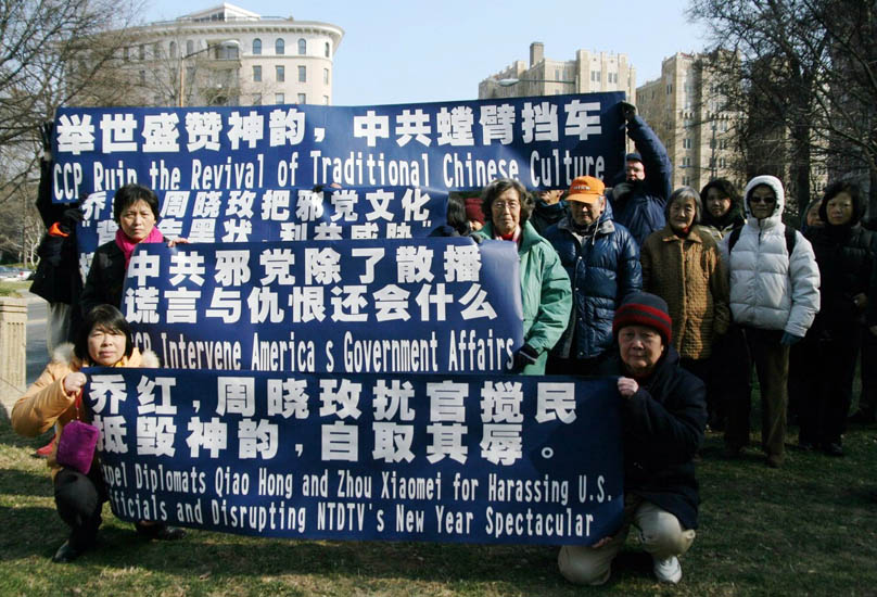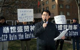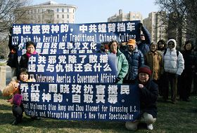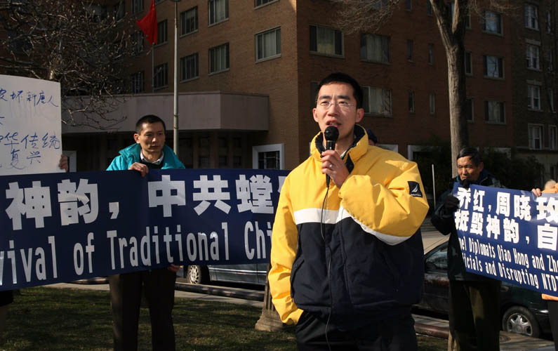 ![]() 华府民众中使馆前谴责使馆官员干扰神韵演出 |