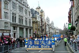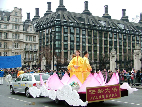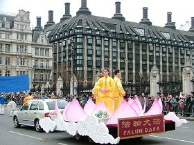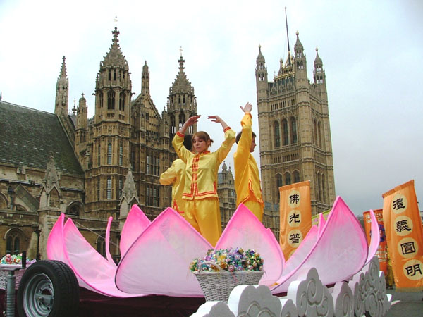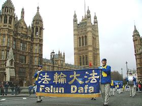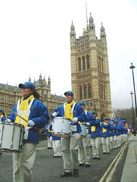![]() 法轮功天国乐团经过英国议会大厦 |