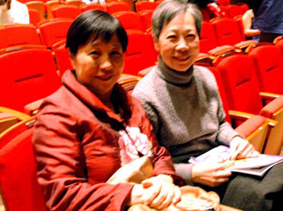 ![]() 喜爱关于法轮功节目的华人姐妹俩:梁珊(右)和梁诚(左)。。 |