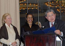 ![]() 宾州州长夫人、费城艺术大道(Avenue of the Arts, Inc.)发起人和现任主席玛舟 •阮岛(Marjorie O. Rendell)(左)、艺术大道执行主任凯伦•路易斯(Karen A.Lewis)、宾州州长顾问委员会亚裔事务执行主任高海超(Harry Kao)。 |