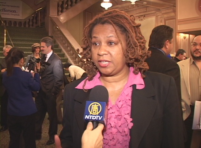 特拉华州最大城市威明顿的市议会主席(President of City Council of Wilmington, Delaware)Ted Blunt先生兴奋的说:“有好几个节目我都很喜欢。我特喜欢打鼓的那个节目,简直太棒了!扇子舞(‘清韵’)非常独特。我还非常喜欢‘顶碗舞’。”Blunt先生表示:“非常高兴能有机会观赏另一种习俗、另一种文化,欣赏另一个民族的人。”他说晚会把他带到了一个他不曾熟悉的历史时期,使他能有这种不同寻常的感受。