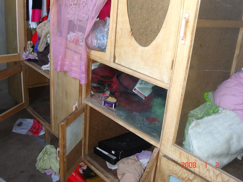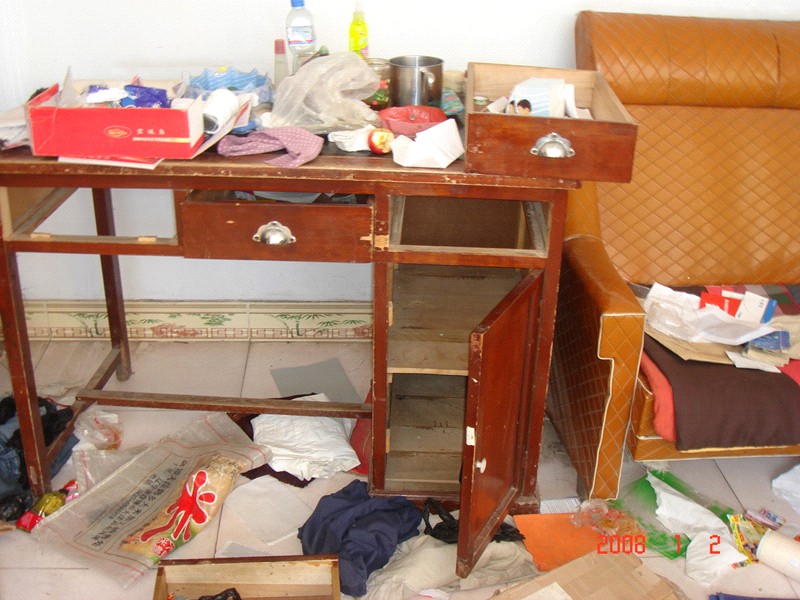 零七年十二月三十日,李东风、张华、洪光辉非法闯入法轮功学员薄彩凤家中,以其收看新!唐!人:电视节目为名,将薄彩凤家中电视、VCD、电视接收器等财物非法抄走,并抖出箱柜中的所有衣物搜钱,连灶膛也被搜过,家中一片狼藉。