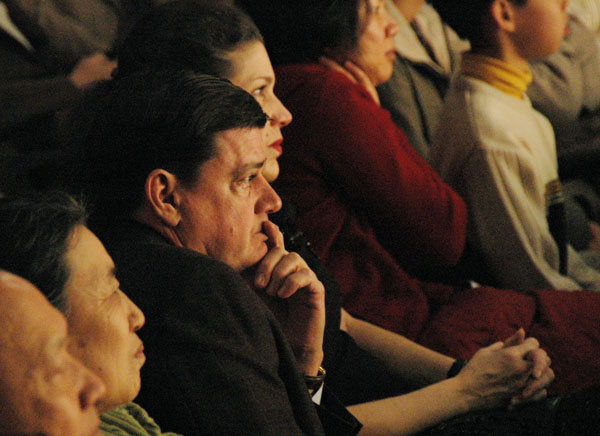 他说:“我不记得是在什么地方看到晚会的传单的。我就来了。我对外国文化非常感兴趣。看了晚会,我对东方文化更感兴趣了。”