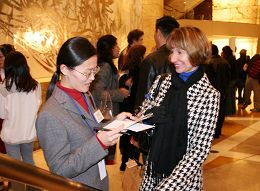 ![]() Dawn Adams (右,接受采访者)在乔治亚州著名学府 Marietta学院约瑟夫惠勒高中(Wheeler High School Marietta, GA)任职教师,她说:“(节目)非常多姿多彩,我被陶醉在整场晚会中。”“我觉的这场演出和我在无线电城看的秀同样引人入胜,精彩纷呈。我会向我的学生推荐这场演出。” |