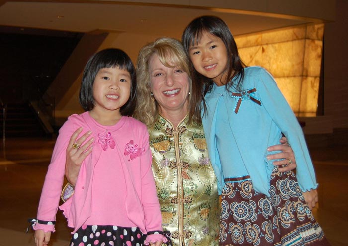 ![]() 布兰德(Rhonda Ballard)带着她俩个领养的中国女儿看秀。她说:“这场晚会对我和 我的家人,都是一次很好的文化体验;特别是对我的女儿们,因为这就是他们自己本 土的文化。” |