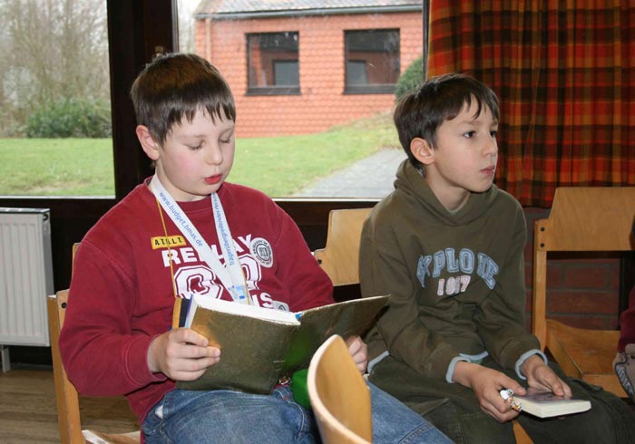 二零零七年十二月底,一些大法小弟子参加了德国明慧学校,有的小弟子自从上次参加了明慧学校之后,一直坚持学法,也有的小弟子念念不忘明慧学校。因为德国法轮功学员住的很分散,小弟子们难得有机会聚在一起,能上明慧学校也是他们盼望的。别看他们年纪小,修炼中他们并没有落下,他们的身影活跃在游行队伍中、在天国乐团中、在发真相资料的行列中。上明慧学校也是他们在一起学法交流的好机会。