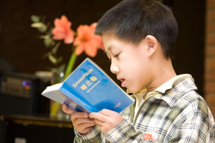 【明慧网二零零八年一月七日】(明慧记者德祥德国报道)当我打开贴有明慧学校字样的门时,看到的是稍大一些的男孩手捧在朗读《论语》,另一旁是那些较大的女孩正在专心的画莲花,一些稍小的孩子在学,几位老师耐心的在教他们。这场景真是让人感到很熟悉,是的,这就是每年一度德国的明慧学校,总是趁年末法轮功学员开法会和聚会期间举办。