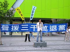 ![]() 集会现场声援三:退.的横幅 |