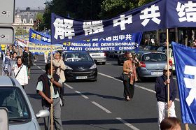 法轮功巴黎大游行的组织者之一胡先生对记者表明:“法轮功被中共迫害已经第十个年头了,是到了解体中共的时候,我们的大游行就是要告诉所有的人中共邪*党-正在解体,已经有四千三百万人退出中共邪*党-了。我们游行的目地还有就是要告诉国际社会关于欧卫公司中断新!唐!人:对中国大陆的信号一事,千千万万个中国同胞得不到中国的真实消息,这是非常严重的问题。