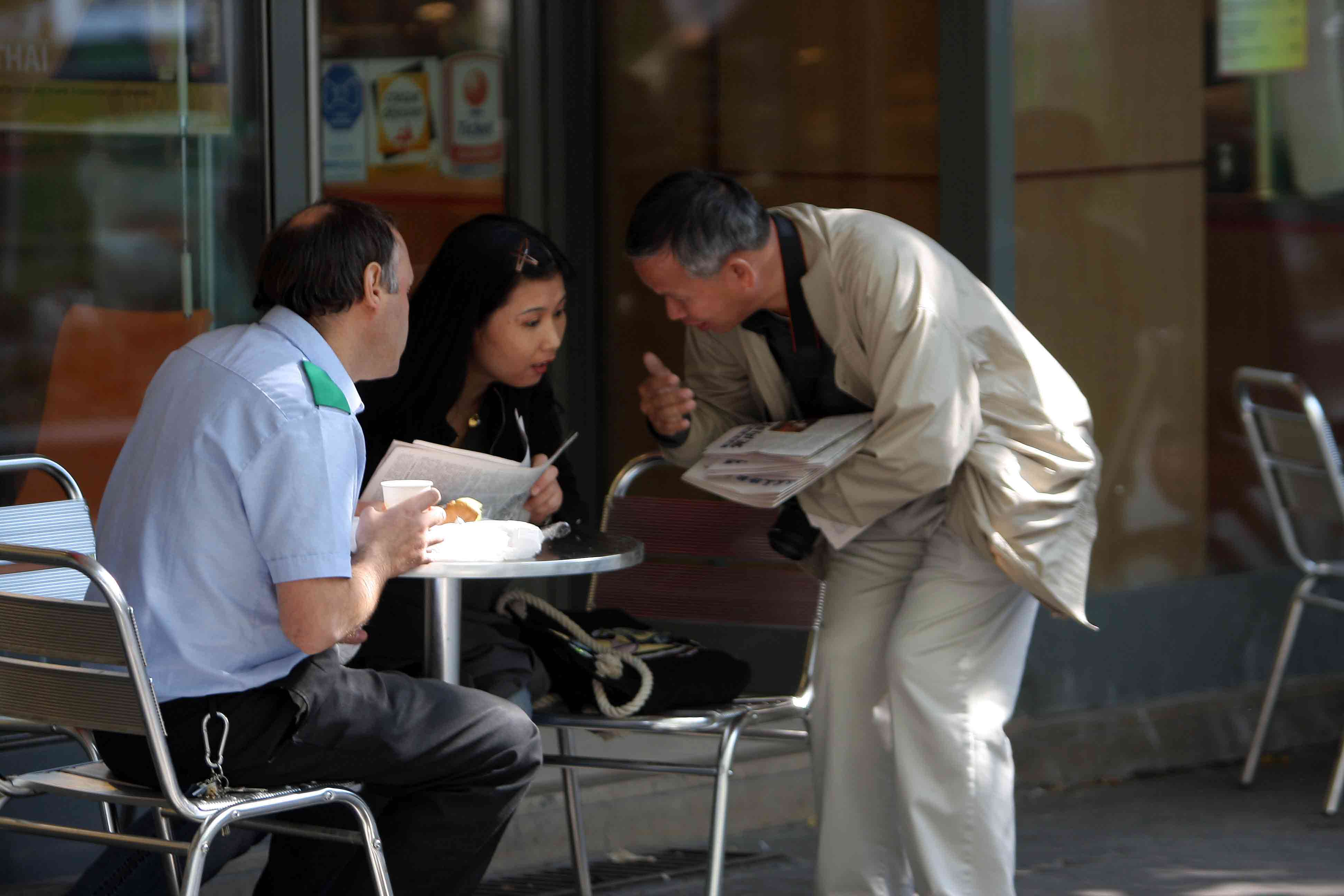 ![]() 路人欣喜接过真相资料,聆听真相。 |