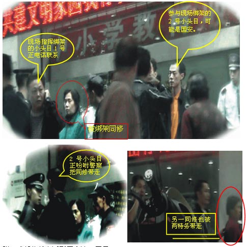 当天有两位女法轮功学员从法庭门外路过,被便衣和警察绑架,如下图所示。如今还不知她们的下落,请知情人士提供详情。