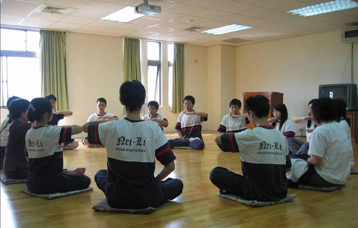 国立内坜高中成立近十年,教师法轮功社团成立也已届八年,国文科、英文科、数学科、社会科、自然科办公室都有老师学炼法轮功,因此,有五十七个班级数的大型学校,很多时候一个班级会同时有两位修炼法轮功的教师任教,虽然教授的科目不同,但他们共同用真善忍的精神在课堂上和学生互动,“如沐春风”是多数孩子给予的赞誉和感谢。