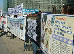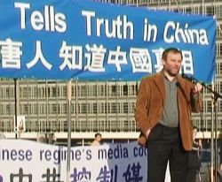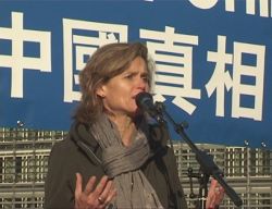 在新闻发布会上,集会主办方新!唐!人:发言人洪凯莉女士介绍了欧洲卫星公司单方面切断新!唐!人:电视台信号事件的过程,随后,她以最近中国大陆发生的毒奶粉事件为例,表示:这不是个别企业的道德问题,而是整个工业系统和政府的腐败,如果没有独立的媒体监督,问题只有在出现事故的时候才会被发现。