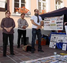 ![]() 不少路人接过真相材料,并签名制止中共迫害法轮功 |
