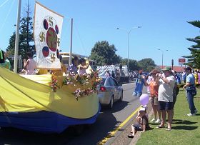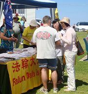 主办方在巡游路线上分四个地段重复介绍各个团体。当法轮功学员的方阵出现时,主办方首先代表当地民众感谢来自悉尼(Sydney)的法轮功团体,并向人们介绍法轮功是古老而久远的传统中国文化,修炼“真善忍”的同时结合五套功法炼习。还介绍了法轮功在世界各地洪传的情况,并告诉大家,如要学炼法轮功请到法轮功摊位。